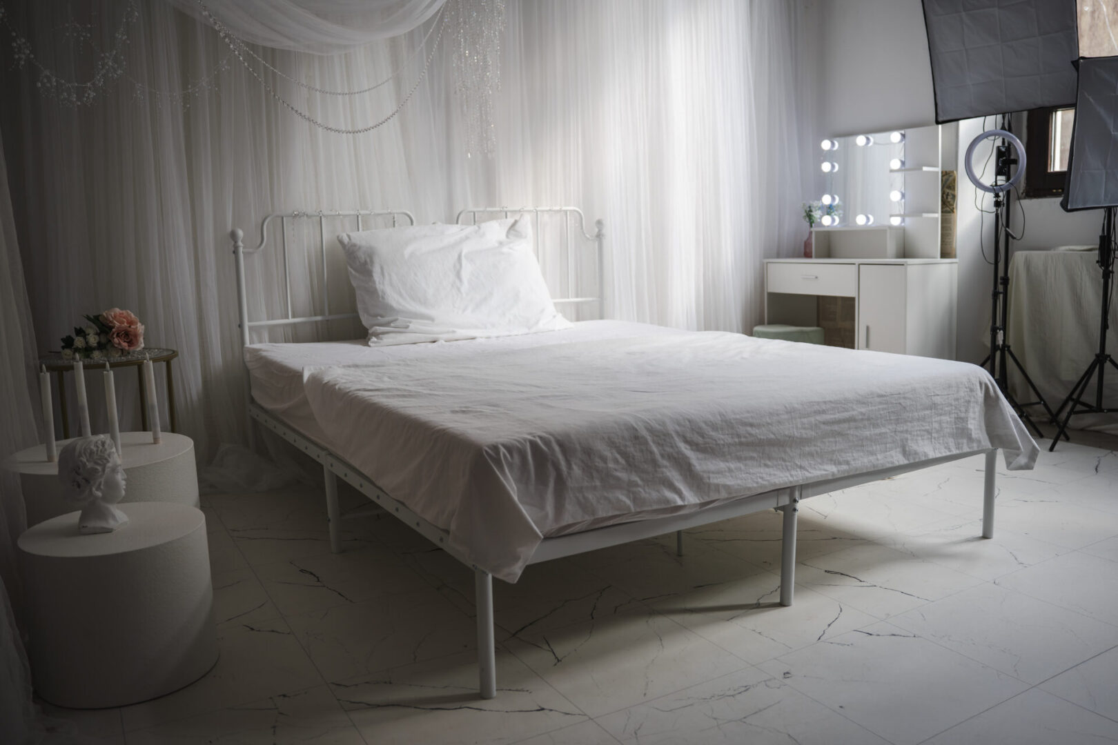 Náš foto ateliér v Bílině je vhodný k pronájmu pro glamour, portrétní a produktovou fotografii, ale i k točení reklam či videoklipů. Pokud nemáte vlastního fotografa, není problém se domluvit, stejně tak pomůžeme s výběrem šikovné vizážistky či modelky.