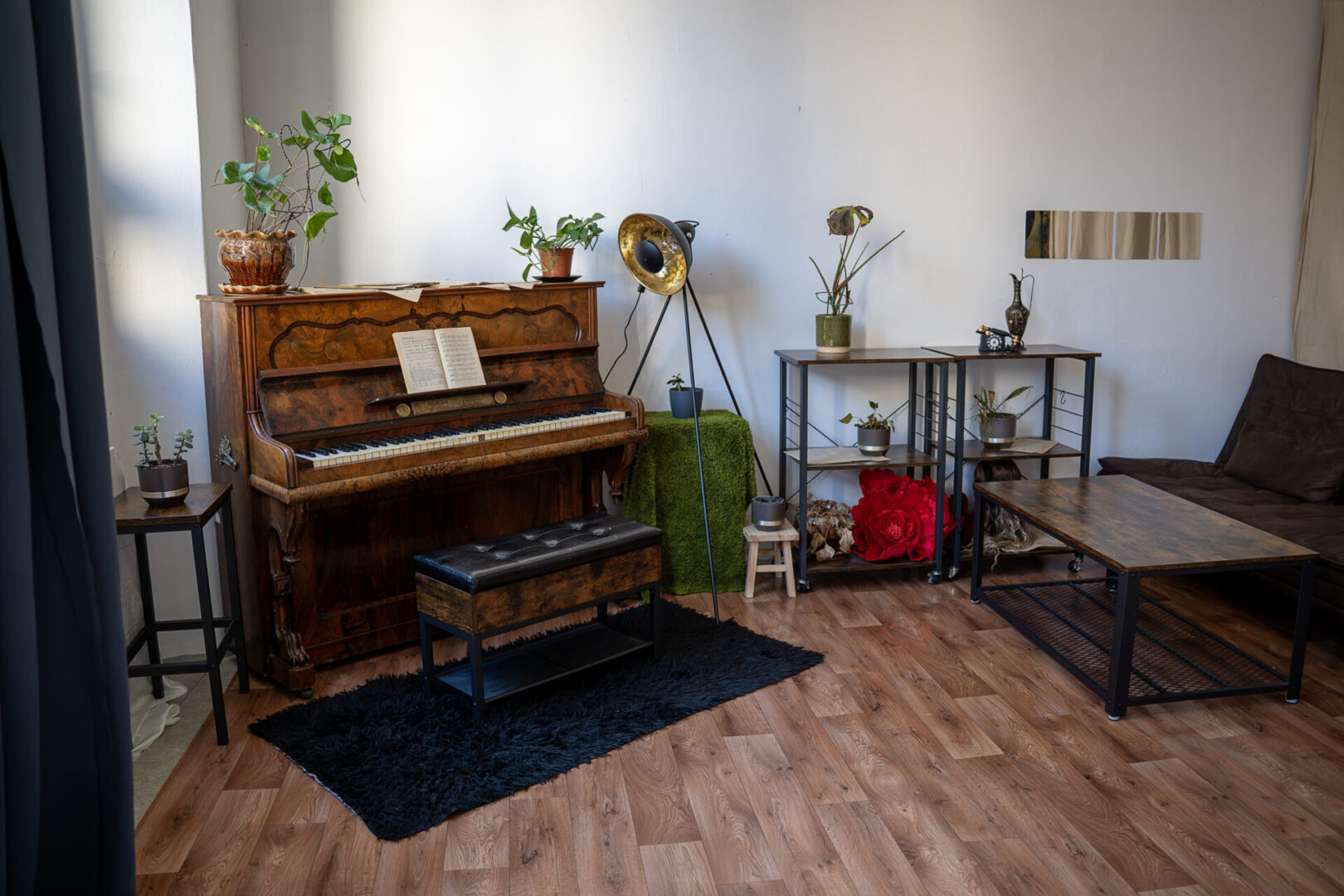 Ať už fotíte pro radost nebo pro klienta, jistě využijete dostatek denního světla, které zaručuje naše 2,5m vysoké a 3,5m široké okno směřující na jihovýchod. Další výhodou, hlavně pro točení nejen např. hudebních videoklipů, je vysoký strop 3,8m, pod který se vleze každý osvětlovač či zvukař. Interiér je laděn částečně do industriálního stylu s muzikantskými prvky a částečně do jemného ženského glamour stylu. Samozřejmostí je vybavení technické a mnoho rekvizit, oblečení a dalších dekorací. Celková plocha je 50m².